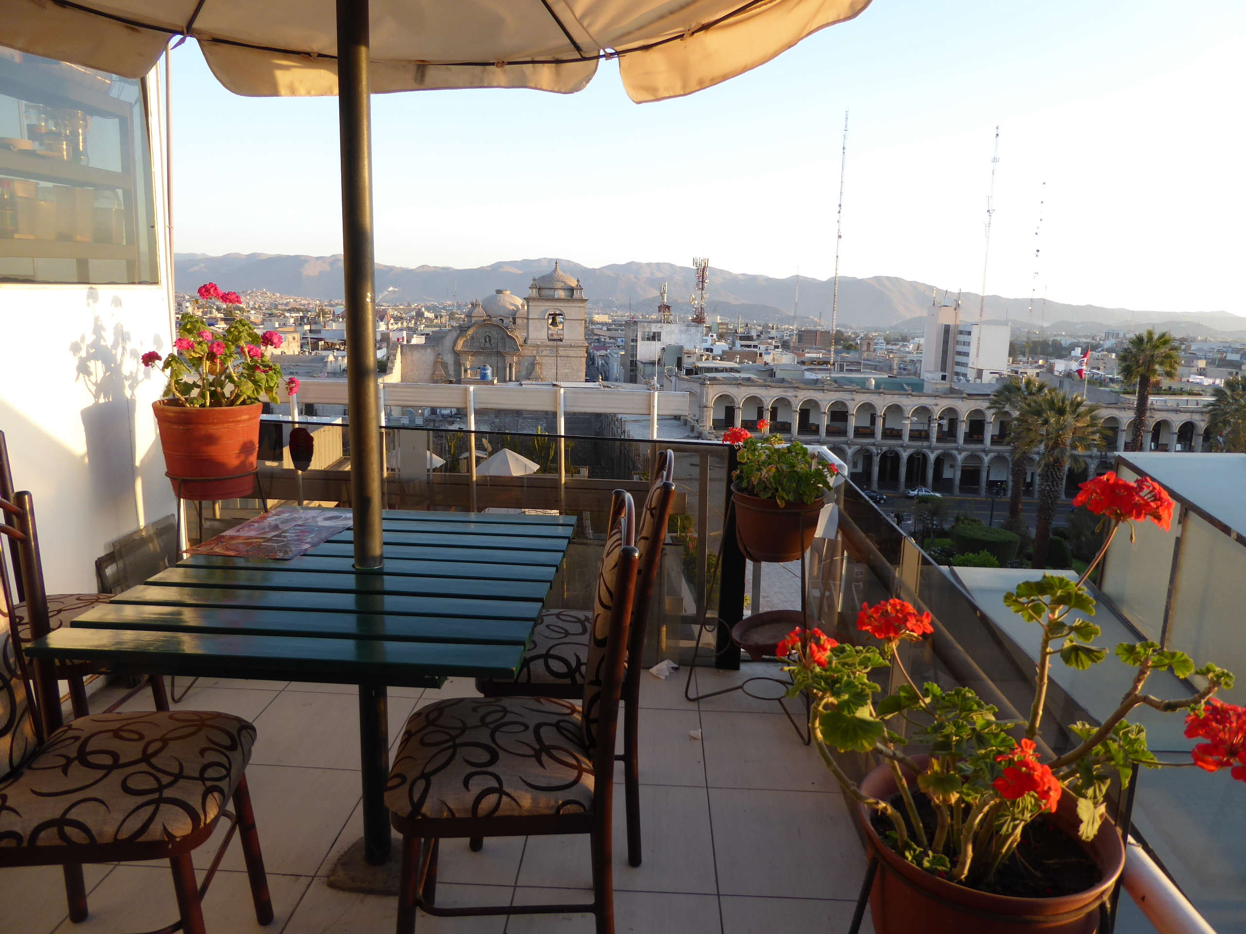 View from our rooftop restaurant in Arequipa at dusk