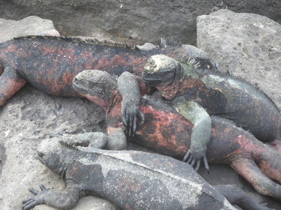 A clutch of red and black marine iguanas, Espanola island