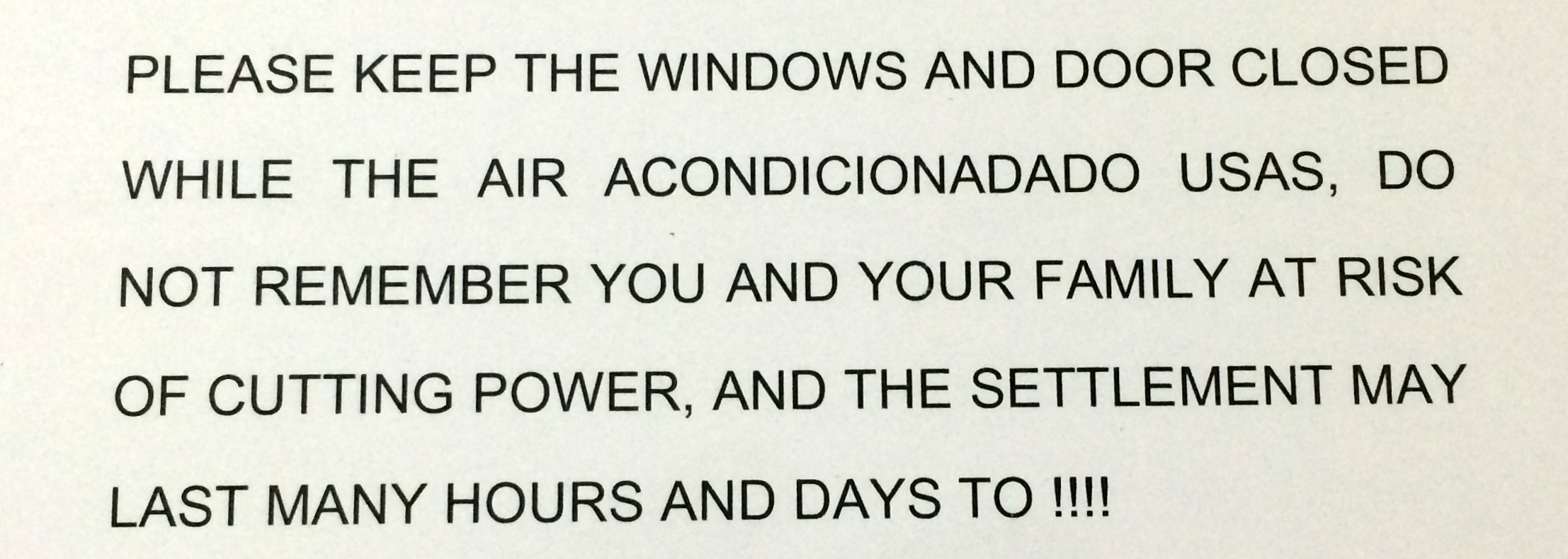 Notice in apartment – we’re not the only ones who use Google Translate obviously